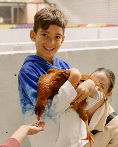 We have sheep, goats and alpacas that all love to gently nibble chaff and pellets off your hands or directly out of the bucket. They are gentle but also always hungry.